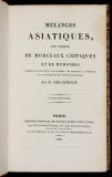 Mélanges Asiatiques, ou, Choix de morceaux de critiques et de mémoires : relatifs aux religions, aux scienies, aux contumes, a l'histoire et la géographie des nations orientales