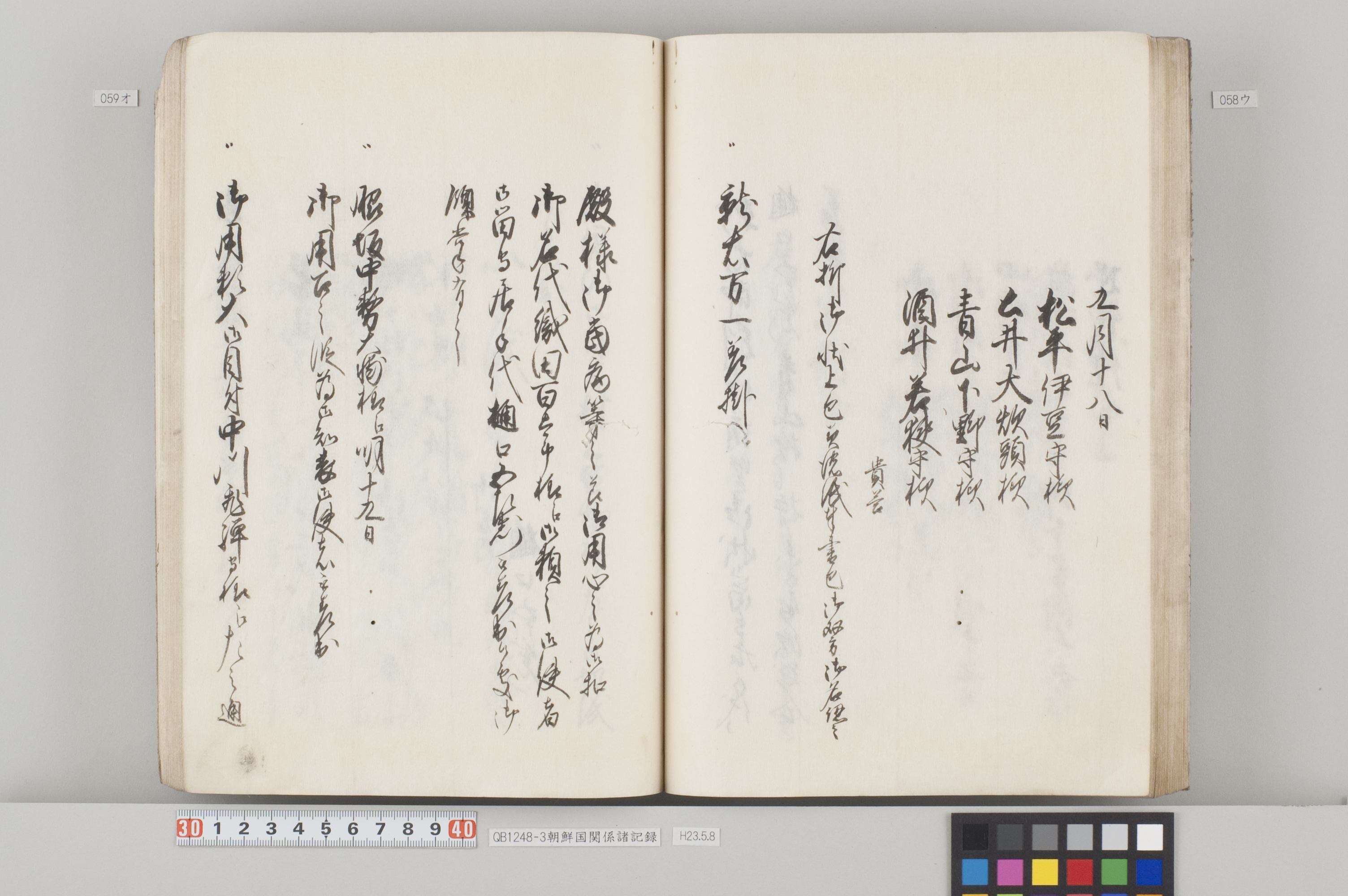 文化12年(1815)から14年にかけて、対馬藩から幕府へ出願した際の記録。3冊ある。 各冊の内容と、表紙に「表御諸札方」と書かれていることから、対馬藩の江戸藩邸で作成された記録の一部であることが分かる。 QB1248-1 全90丁の和装本。表紙には「朝鮮国飢饉ニ付米五万石買取度段、従礼曹参議以書簡懇請在之候付、公義江御拝借御願書被差出候記録」とある。 飢饉に見舞われた朝鮮国から米5万石を買い付けたいとの依頼を受けた対馬藩が、幕府に対して米の支給を出願した際の記録。文化12年3月から同年8月のことが記載されている。 巻末には朝鮮国への船賃の見積もりも記してあるが、実際に朝鮮国へ米が送られたかは、この記録からは分からない。 また、朝鮮国の倭館からの飢饉に関する詳細な報告も記載されている。 QB1248-2 全47丁の和装本。表紙には「訳官入料御願記録 丁丑四月三日御金二千両御手当被仰出」とある。 徳川家慶子竹千代死去に対する弔問の朝鮮国からの使者(訳官)を応接するための費用を援助してほしいと幕府に出願した記録。文化13年12月から同14年4月のことが記載されている。この出願により、対馬藩には2千両の手当てが支給されたことが分かる。 QB1248-3 全130丁の和装本。表紙には「朝鮮国凶年以来入送米相滞御難渋之事情依御願御米壱万石御拝領記録」とある。 対馬は朝鮮国から米を買っていたが飢饉のため米を買うことができなくなり、幕府に援助米を出願し受け取った時の記録。文化13年5月から同14年3月のことが記載されている。 巻末には、延享3年(1746)以降の幕府からの援助の記録や、今回の出願に際して尽力した幕府役人への御礼の目録も収録してある。 なお『徳川実紀』によれば、対馬藩は文化12年7月にも幕府より1万石を拝領している。