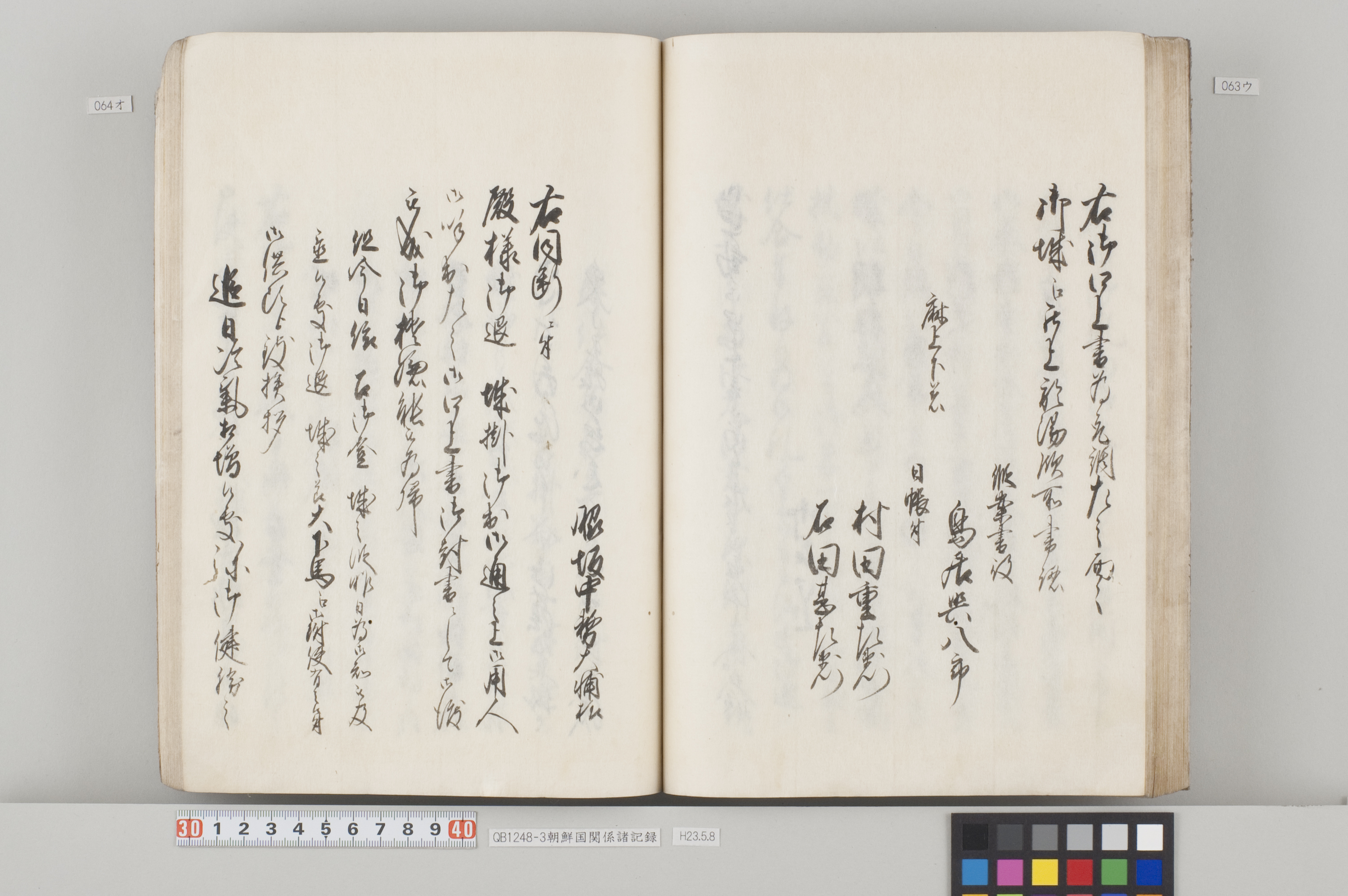 文化12年(1815)から14年にかけて、対馬藩から幕府へ出願した際の記録。3冊ある。 各冊の内容と、表紙に「表御諸札方」と書かれていることから、対馬藩の江戸藩邸で作成された記録の一部であることが分かる。 QB1248-1 全90丁の和装本。表紙には「朝鮮国飢饉ニ付米五万石買取度段、従礼曹参議以書簡懇請在之候付、公義江御拝借御願書被差出候記録」とある。 飢饉に見舞われた朝鮮国から米5万石を買い付けたいとの依頼を受けた対馬藩が、幕府に対して米の支給を出願した際の記録。文化12年3月から同年8月のことが記載されている。 巻末には朝鮮国への船賃の見積もりも記してあるが、実際に朝鮮国へ米が送られたかは、この記録からは分からない。 また、朝鮮国の倭館からの飢饉に関する詳細な報告も記載されている。 QB1248-2 全47丁の和装本。表紙には「訳官入料御願記録 丁丑四月三日御金二千両御手当被仰出」とある。 徳川家慶子竹千代死去に対する弔問の朝鮮国からの使者(訳官)を応接するための費用を援助してほしいと幕府に出願した記録。文化13年12月から同14年4月のことが記載されている。この出願により、対馬藩には2千両の手当てが支給されたことが分かる。 QB1248-3 全130丁の和装本。表紙には「朝鮮国凶年以来入送米相滞御難渋之事情依御願御米壱万石御拝領記録」とある。 対馬は朝鮮国から米を買っていたが飢饉のため米を買うことができなくなり、幕府に援助米を出願し受け取った時の記録。文化13年5月から同14年3月のことが記載されている。 巻末には、延享3年(1746)以降の幕府からの援助の記録や、今回の出願に際して尽力した幕府役人への御礼の目録も収録してある。 なお『徳川実紀』によれば、対馬藩は文化12年7月にも幕府より1万石を拝領している。