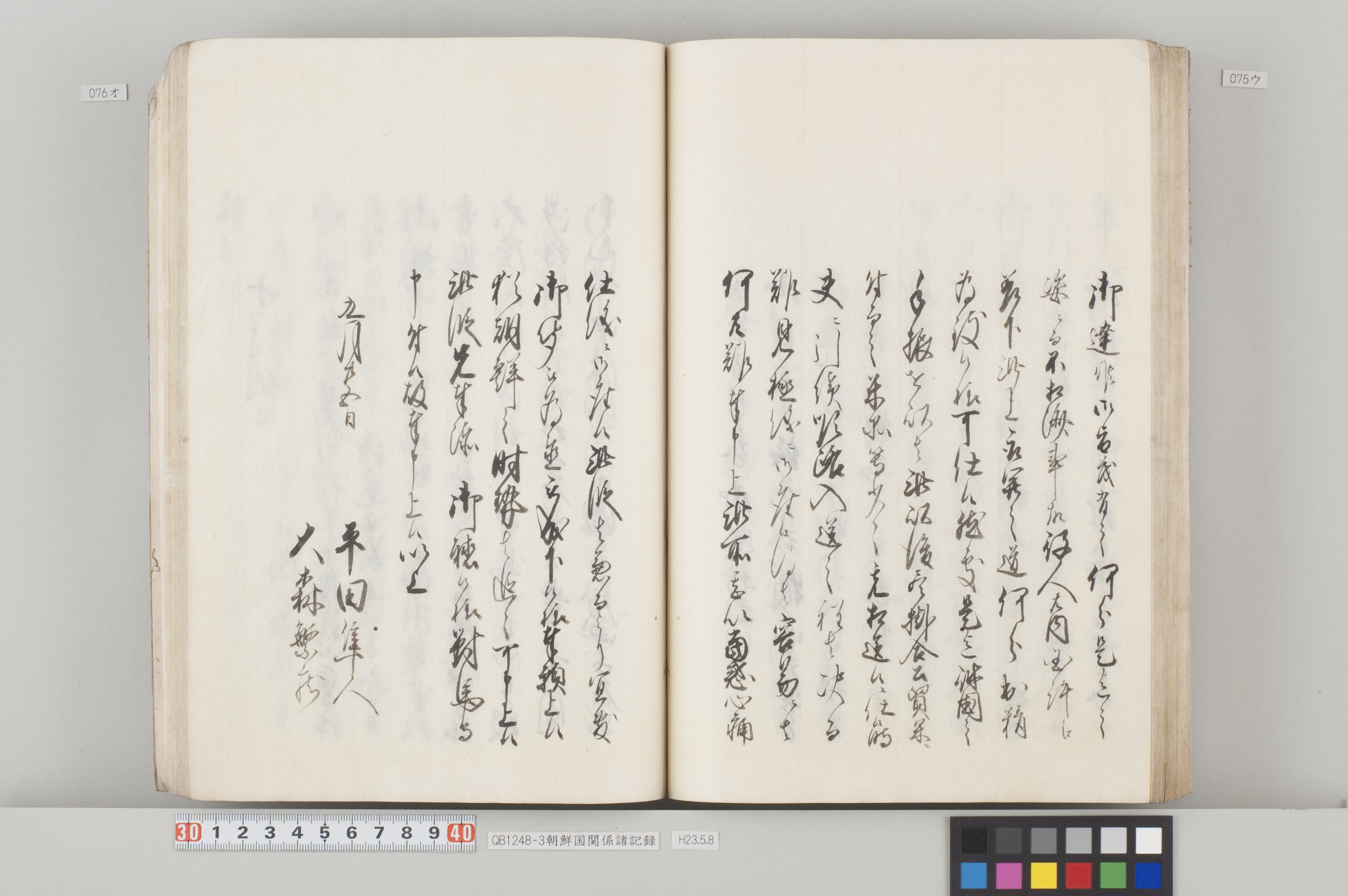 文化12年(1815)から14年にかけて、対馬藩から幕府へ出願した際の記録。3冊ある。 各冊の内容と、表紙に「表御諸札方」と書かれていることから、対馬藩の江戸藩邸で作成された記録の一部であることが分かる。 QB1248-1 全90丁の和装本。表紙には「朝鮮国飢饉ニ付米五万石買取度段、従礼曹参議以書簡懇請在之候付、公義江御拝借御願書被差出候記録」とある。 飢饉に見舞われた朝鮮国から米5万石を買い付けたいとの依頼を受けた対馬藩が、幕府に対して米の支給を出願した際の記録。文化12年3月から同年8月のことが記載されている。 巻末には朝鮮国への船賃の見積もりも記してあるが、実際に朝鮮国へ米が送られたかは、この記録からは分からない。 また、朝鮮国の倭館からの飢饉に関する詳細な報告も記載されている。 QB1248-2 全47丁の和装本。表紙には「訳官入料御願記録 丁丑四月三日御金二千両御手当被仰出」とある。 徳川家慶子竹千代死去に対する弔問の朝鮮国からの使者(訳官)を応接するための費用を援助してほしいと幕府に出願した記録。文化13年12月から同14年4月のことが記載されている。この出願により、対馬藩には2千両の手当てが支給されたことが分かる。 QB1248-3 全130丁の和装本。表紙には「朝鮮国凶年以来入送米相滞御難渋之事情依御願御米壱万石御拝領記録」とある。 対馬は朝鮮国から米を買っていたが飢饉のため米を買うことができなくなり、幕府に援助米を出願し受け取った時の記録。文化13年5月から同14年3月のことが記載されている。 巻末には、延享3年(1746)以降の幕府からの援助の記録や、今回の出願に際して尽力した幕府役人への御礼の目録も収録してある。 なお『徳川実紀』によれば、対馬藩は文化12年7月にも幕府より1万石を拝領している。