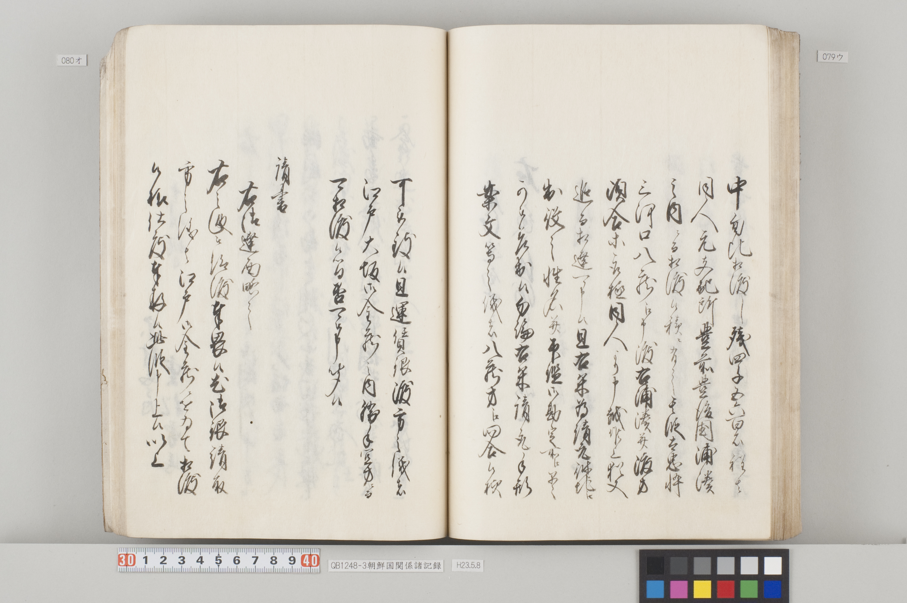 文化12年(1815)から14年にかけて、対馬藩から幕府へ出願した際の記録。3冊ある。 各冊の内容と、表紙に「表御諸札方」と書かれていることから、対馬藩の江戸藩邸で作成された記録の一部であることが分かる。 QB1248-1 全90丁の和装本。表紙には「朝鮮国飢饉ニ付米五万石買取度段、従礼曹参議以書簡懇請在之候付、公義江御拝借御願書被差出候記録」とある。 飢饉に見舞われた朝鮮国から米5万石を買い付けたいとの依頼を受けた対馬藩が、幕府に対して米の支給を出願した際の記録。文化12年3月から同年8月のことが記載されている。 巻末には朝鮮国への船賃の見積もりも記してあるが、実際に朝鮮国へ米が送られたかは、この記録からは分からない。 また、朝鮮国の倭館からの飢饉に関する詳細な報告も記載されている。 QB1248-2 全47丁の和装本。表紙には「訳官入料御願記録 丁丑四月三日御金二千両御手当被仰出」とある。 徳川家慶子竹千代死去に対する弔問の朝鮮国からの使者(訳官)を応接するための費用を援助してほしいと幕府に出願した記録。文化13年12月から同14年4月のことが記載されている。この出願により、対馬藩には2千両の手当てが支給されたことが分かる。 QB1248-3 全130丁の和装本。表紙には「朝鮮国凶年以来入送米相滞御難渋之事情依御願御米壱万石御拝領記録」とある。 対馬は朝鮮国から米を買っていたが飢饉のため米を買うことができなくなり、幕府に援助米を出願し受け取った時の記録。文化13年5月から同14年3月のことが記載されている。 巻末には、延享3年(1746)以降の幕府からの援助の記録や、今回の出願に際して尽力した幕府役人への御礼の目録も収録してある。 なお『徳川実紀』によれば、対馬藩は文化12年7月にも幕府より1万石を拝領している。