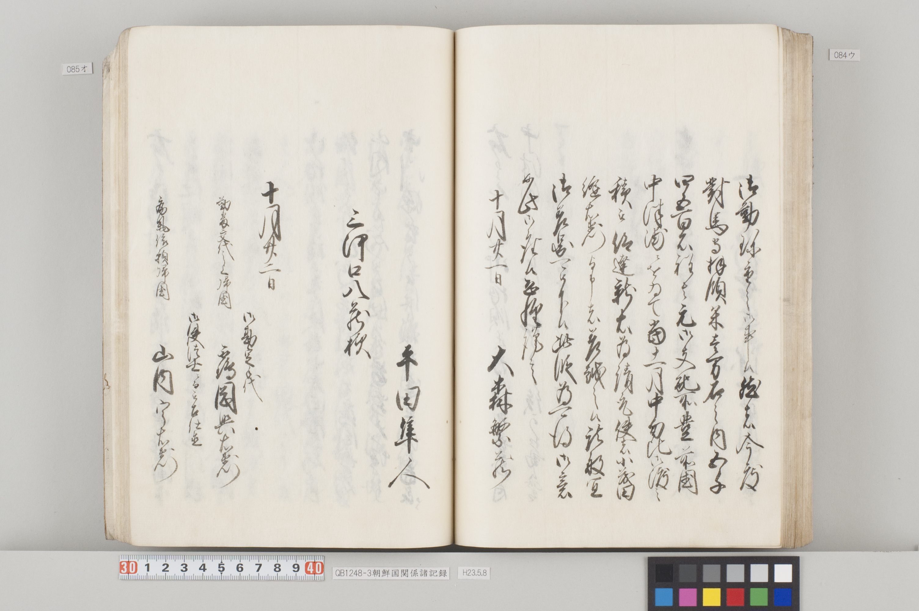 文化12年(1815)から14年にかけて、対馬藩から幕府へ出願した際の記録。3冊ある。 各冊の内容と、表紙に「表御諸札方」と書かれていることから、対馬藩の江戸藩邸で作成された記録の一部であることが分かる。 QB1248-1 全90丁の和装本。表紙には「朝鮮国飢饉ニ付米五万石買取度段、従礼曹参議以書簡懇請在之候付、公義江御拝借御願書被差出候記録」とある。 飢饉に見舞われた朝鮮国から米5万石を買い付けたいとの依頼を受けた対馬藩が、幕府に対して米の支給を出願した際の記録。文化12年3月から同年8月のことが記載されている。 巻末には朝鮮国への船賃の見積もりも記してあるが、実際に朝鮮国へ米が送られたかは、この記録からは分からない。 また、朝鮮国の倭館からの飢饉に関する詳細な報告も記載されている。 QB1248-2 全47丁の和装本。表紙には「訳官入料御願記録 丁丑四月三日御金二千両御手当被仰出」とある。 徳川家慶子竹千代死去に対する弔問の朝鮮国からの使者(訳官)を応接するための費用を援助してほしいと幕府に出願した記録。文化13年12月から同14年4月のことが記載されている。この出願により、対馬藩には2千両の手当てが支給されたことが分かる。 QB1248-3 全130丁の和装本。表紙には「朝鮮国凶年以来入送米相滞御難渋之事情依御願御米壱万石御拝領記録」とある。 対馬は朝鮮国から米を買っていたが飢饉のため米を買うことができなくなり、幕府に援助米を出願し受け取った時の記録。文化13年5月から同14年3月のことが記載されている。 巻末には、延享3年(1746)以降の幕府からの援助の記録や、今回の出願に際して尽力した幕府役人への御礼の目録も収録してある。 なお『徳川実紀』によれば、対馬藩は文化12年7月にも幕府より1万石を拝領している。