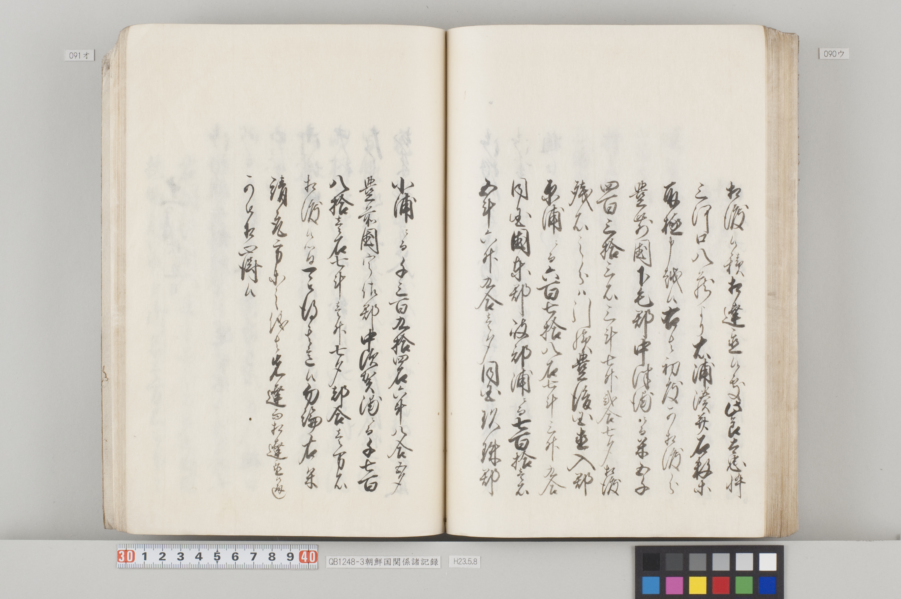 文化12年(1815)から14年にかけて、対馬藩から幕府へ出願した際の記録。3冊ある。 各冊の内容と、表紙に「表御諸札方」と書かれていることから、対馬藩の江戸藩邸で作成された記録の一部であることが分かる。 QB1248-1 全90丁の和装本。表紙には「朝鮮国飢饉ニ付米五万石買取度段、従礼曹参議以書簡懇請在之候付、公義江御拝借御願書被差出候記録」とある。 飢饉に見舞われた朝鮮国から米5万石を買い付けたいとの依頼を受けた対馬藩が、幕府に対して米の支給を出願した際の記録。文化12年3月から同年8月のことが記載されている。 巻末には朝鮮国への船賃の見積もりも記してあるが、実際に朝鮮国へ米が送られたかは、この記録からは分からない。 また、朝鮮国の倭館からの飢饉に関する詳細な報告も記載されている。 QB1248-2 全47丁の和装本。表紙には「訳官入料御願記録 丁丑四月三日御金二千両御手当被仰出」とある。 徳川家慶子竹千代死去に対する弔問の朝鮮国からの使者(訳官)を応接するための費用を援助してほしいと幕府に出願した記録。文化13年12月から同14年4月のことが記載されている。この出願により、対馬藩には2千両の手当てが支給されたことが分かる。 QB1248-3 全130丁の和装本。表紙には「朝鮮国凶年以来入送米相滞御難渋之事情依御願御米壱万石御拝領記録」とある。 対馬は朝鮮国から米を買っていたが飢饉のため米を買うことができなくなり、幕府に援助米を出願し受け取った時の記録。文化13年5月から同14年3月のことが記載されている。 巻末には、延享3年(1746)以降の幕府からの援助の記録や、今回の出願に際して尽力した幕府役人への御礼の目録も収録してある。 なお『徳川実紀』によれば、対馬藩は文化12年7月にも幕府より1万石を拝領している。