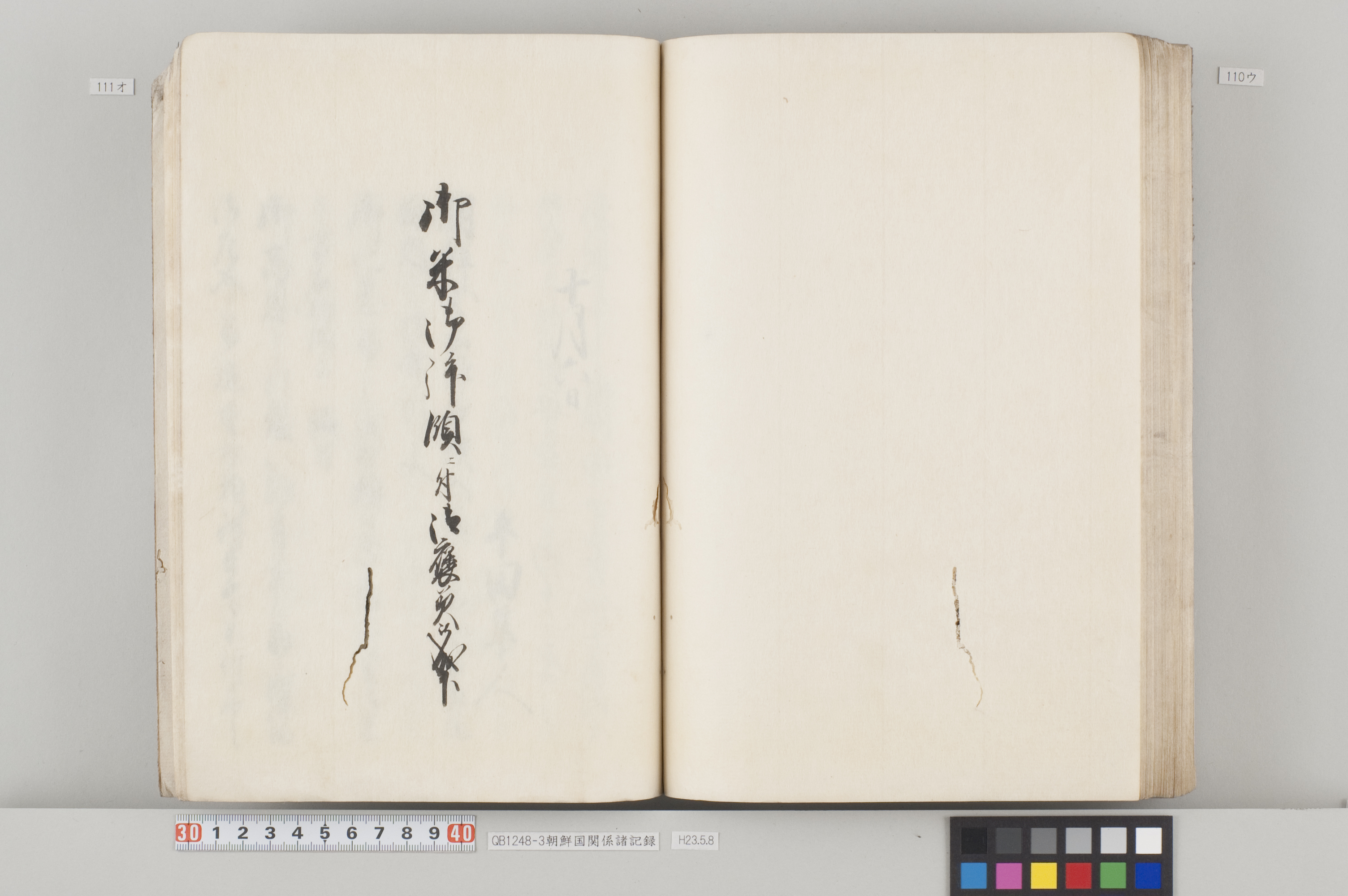 文化12年(1815)から14年にかけて、対馬藩から幕府へ出願した際の記録。3冊ある。 各冊の内容と、表紙に「表御諸札方」と書かれていることから、対馬藩の江戸藩邸で作成された記録の一部であることが分かる。 QB1248-1 全90丁の和装本。表紙には「朝鮮国飢饉ニ付米五万石買取度段、従礼曹参議以書簡懇請在之候付、公義江御拝借御願書被差出候記録」とある。 飢饉に見舞われた朝鮮国から米5万石を買い付けたいとの依頼を受けた対馬藩が、幕府に対して米の支給を出願した際の記録。文化12年3月から同年8月のことが記載されている。 巻末には朝鮮国への船賃の見積もりも記してあるが、実際に朝鮮国へ米が送られたかは、この記録からは分からない。 また、朝鮮国の倭館からの飢饉に関する詳細な報告も記載されている。 QB1248-2 全47丁の和装本。表紙には「訳官入料御願記録 丁丑四月三日御金二千両御手当被仰出」とある。 徳川家慶子竹千代死去に対する弔問の朝鮮国からの使者(訳官)を応接するための費用を援助してほしいと幕府に出願した記録。文化13年12月から同14年4月のことが記載されている。この出願により、対馬藩には2千両の手当てが支給されたことが分かる。 QB1248-3 全130丁の和装本。表紙には「朝鮮国凶年以来入送米相滞御難渋之事情依御願御米壱万石御拝領記録」とある。 対馬は朝鮮国から米を買っていたが飢饉のため米を買うことができなくなり、幕府に援助米を出願し受け取った時の記録。文化13年5月から同14年3月のことが記載されている。 巻末には、延享3年(1746)以降の幕府からの援助の記録や、今回の出願に際して尽力した幕府役人への御礼の目録も収録してある。 なお『徳川実紀』によれば、対馬藩は文化12年7月にも幕府より1万石を拝領している。