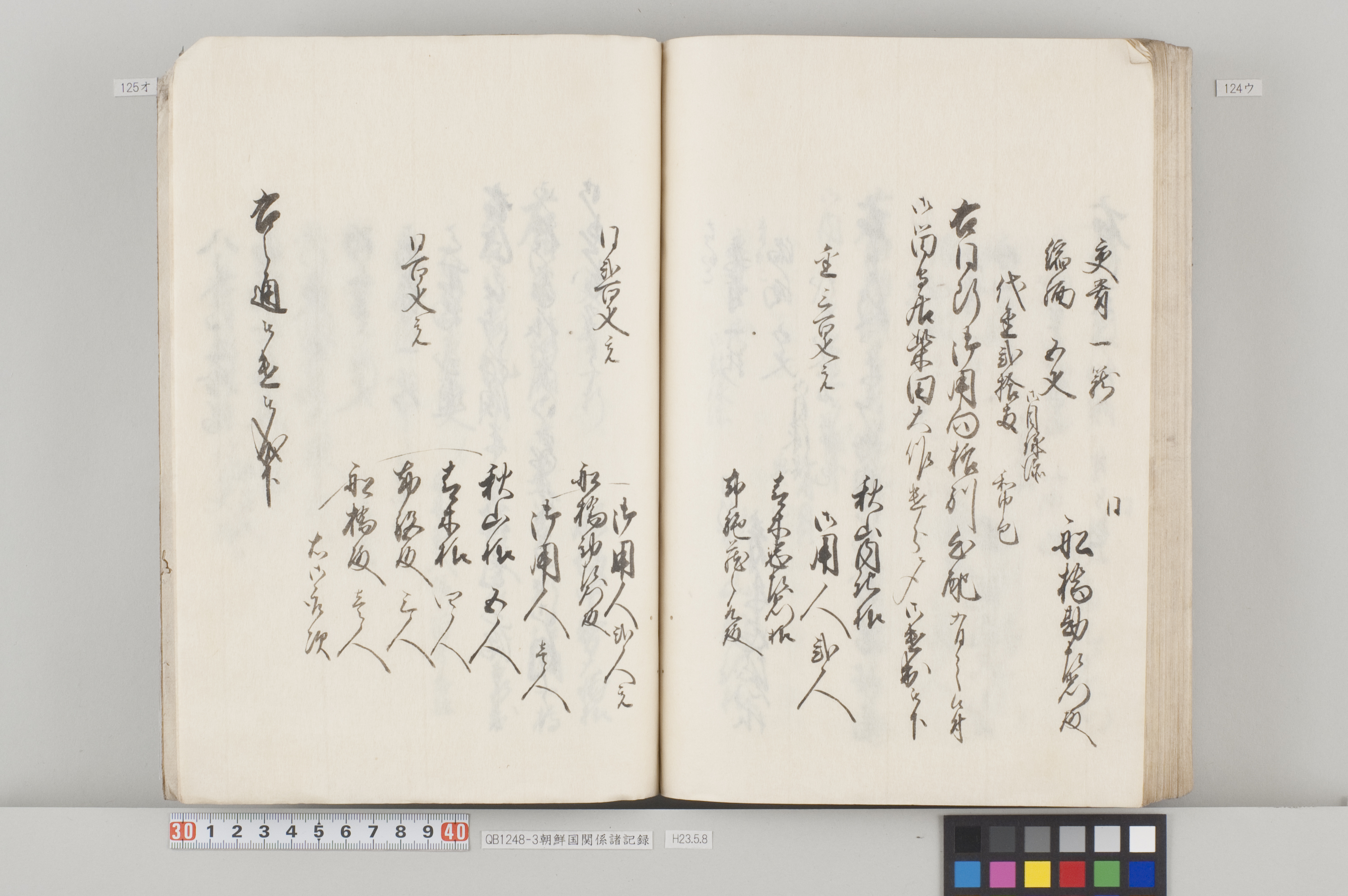 文化12年(1815)から14年にかけて、対馬藩から幕府へ出願した際の記録。3冊ある。 各冊の内容と、表紙に「表御諸札方」と書かれていることから、対馬藩の江戸藩邸で作成された記録の一部であることが分かる。 QB1248-1 全90丁の和装本。表紙には「朝鮮国飢饉ニ付米五万石買取度段、従礼曹参議以書簡懇請在之候付、公義江御拝借御願書被差出候記録」とある。 飢饉に見舞われた朝鮮国から米5万石を買い付けたいとの依頼を受けた対馬藩が、幕府に対して米の支給を出願した際の記録。文化12年3月から同年8月のことが記載されている。 巻末には朝鮮国への船賃の見積もりも記してあるが、実際に朝鮮国へ米が送られたかは、この記録からは分からない。 また、朝鮮国の倭館からの飢饉に関する詳細な報告も記載されている。 QB1248-2 全47丁の和装本。表紙には「訳官入料御願記録 丁丑四月三日御金二千両御手当被仰出」とある。 徳川家慶子竹千代死去に対する弔問の朝鮮国からの使者(訳官)を応接するための費用を援助してほしいと幕府に出願した記録。文化13年12月から同14年4月のことが記載されている。この出願により、対馬藩には2千両の手当てが支給されたことが分かる。 QB1248-3 全130丁の和装本。表紙には「朝鮮国凶年以来入送米相滞御難渋之事情依御願御米壱万石御拝領記録」とある。 対馬は朝鮮国から米を買っていたが飢饉のため米を買うことができなくなり、幕府に援助米を出願し受け取った時の記録。文化13年5月から同14年3月のことが記載されている。 巻末には、延享3年(1746)以降の幕府からの援助の記録や、今回の出願に際して尽力した幕府役人への御礼の目録も収録してある。 なお『徳川実紀』によれば、対馬藩は文化12年7月にも幕府より1万石を拝領している。
