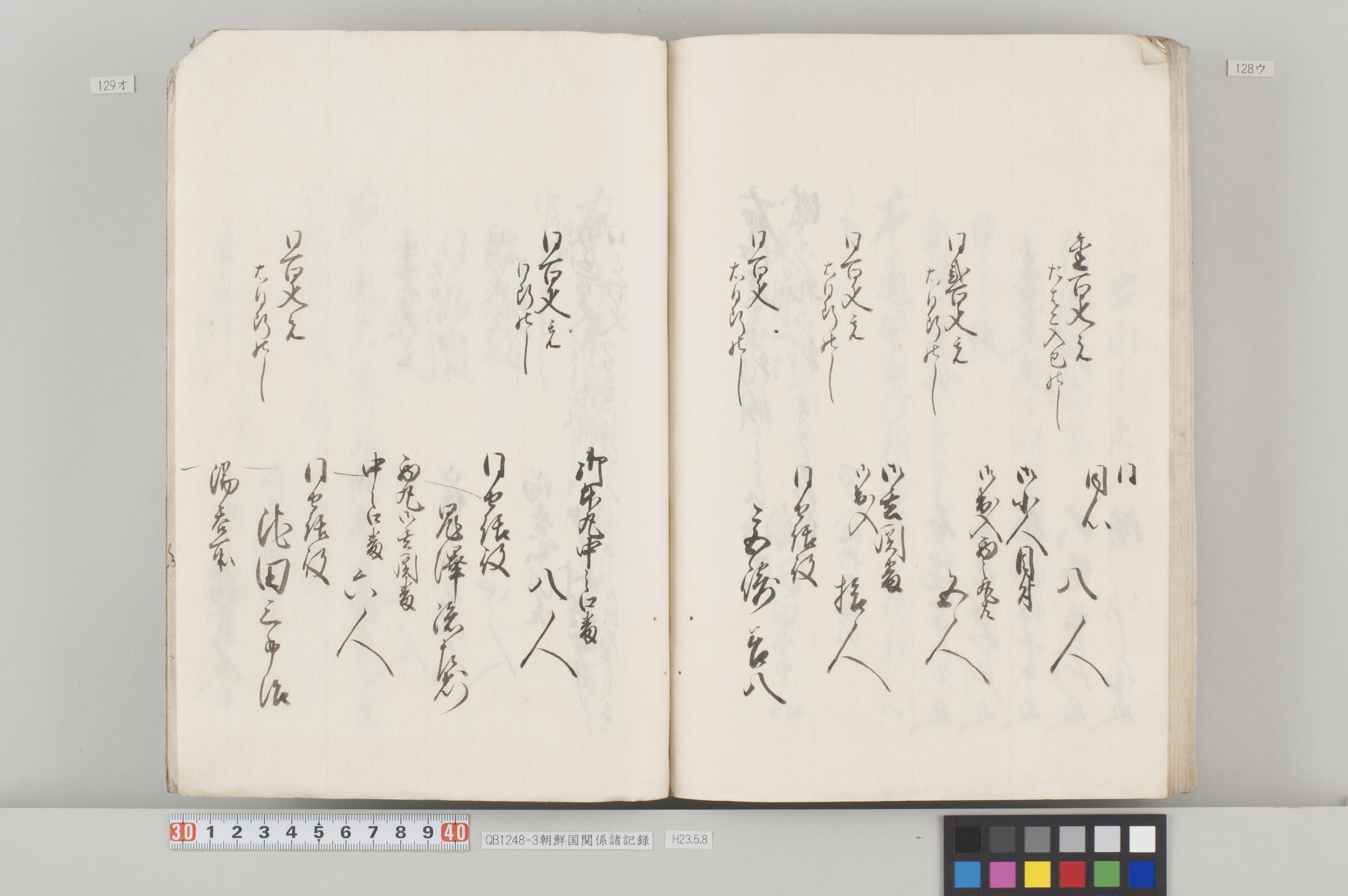 文化12年(1815)から14年にかけて、対馬藩から幕府へ出願した際の記録。3冊ある。 各冊の内容と、表紙に「表御諸札方」と書かれていることから、対馬藩の江戸藩邸で作成された記録の一部であることが分かる。 QB1248-1 全90丁の和装本。表紙には「朝鮮国飢饉ニ付米五万石買取度段、従礼曹参議以書簡懇請在之候付、公義江御拝借御願書被差出候記録」とある。 飢饉に見舞われた朝鮮国から米5万石を買い付けたいとの依頼を受けた対馬藩が、幕府に対して米の支給を出願した際の記録。文化12年3月から同年8月のことが記載されている。 巻末には朝鮮国への船賃の見積もりも記してあるが、実際に朝鮮国へ米が送られたかは、この記録からは分からない。 また、朝鮮国の倭館からの飢饉に関する詳細な報告も記載されている。 QB1248-2 全47丁の和装本。表紙には「訳官入料御願記録 丁丑四月三日御金二千両御手当被仰出」とある。 徳川家慶子竹千代死去に対する弔問の朝鮮国からの使者(訳官)を応接するための費用を援助してほしいと幕府に出願した記録。文化13年12月から同14年4月のことが記載されている。この出願により、対馬藩には2千両の手当てが支給されたことが分かる。 QB1248-3 全130丁の和装本。表紙には「朝鮮国凶年以来入送米相滞御難渋之事情依御願御米壱万石御拝領記録」とある。 対馬は朝鮮国から米を買っていたが飢饉のため米を買うことができなくなり、幕府に援助米を出願し受け取った時の記録。文化13年5月から同14年3月のことが記載されている。 巻末には、延享3年(1746)以降の幕府からの援助の記録や、今回の出願に際して尽力した幕府役人への御礼の目録も収録してある。 なお『徳川実紀』によれば、対馬藩は文化12年7月にも幕府より1万石を拝領している。
