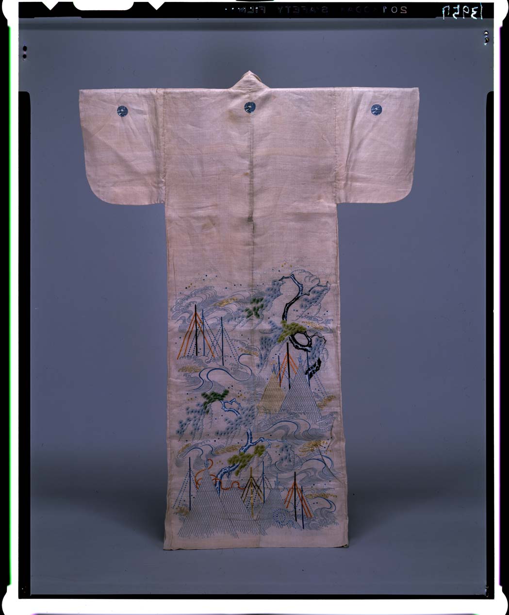 薄紅麻地網干流水松模様帷子