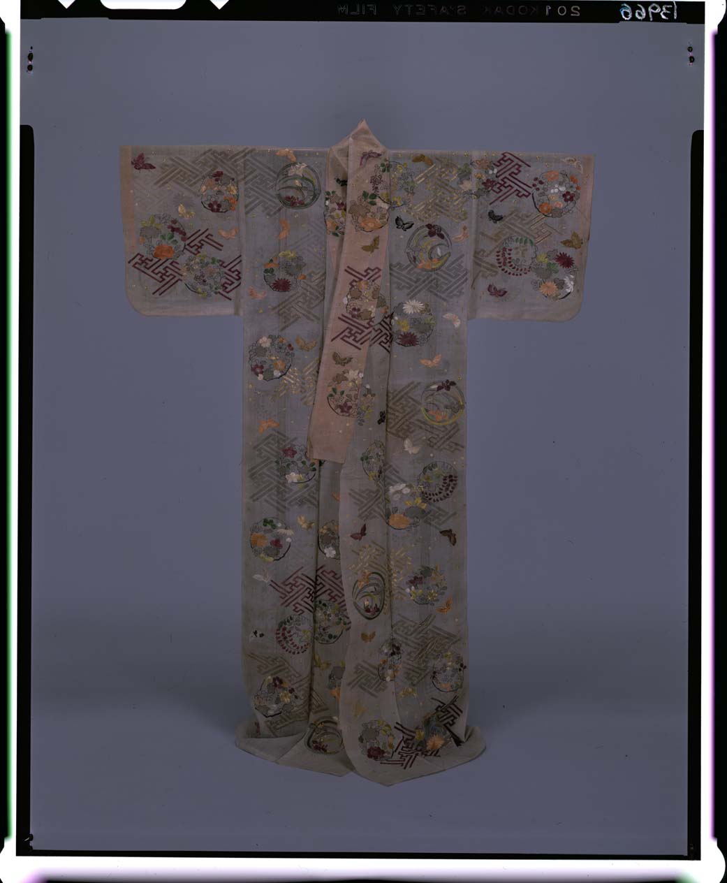 白茶麻地紗綾形花丸模様帷子