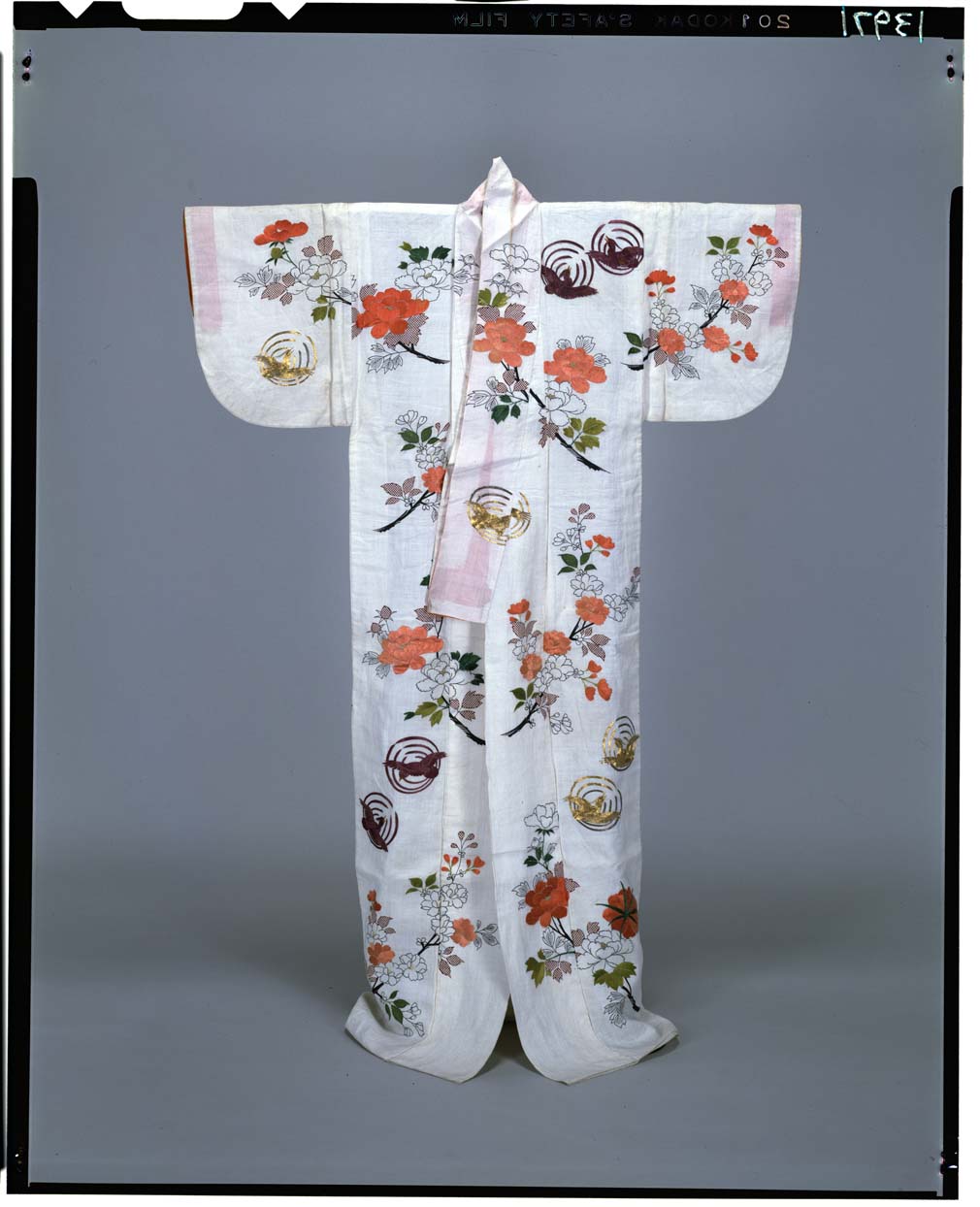 白麻地牡丹桜折枝鳥丸模様帷子