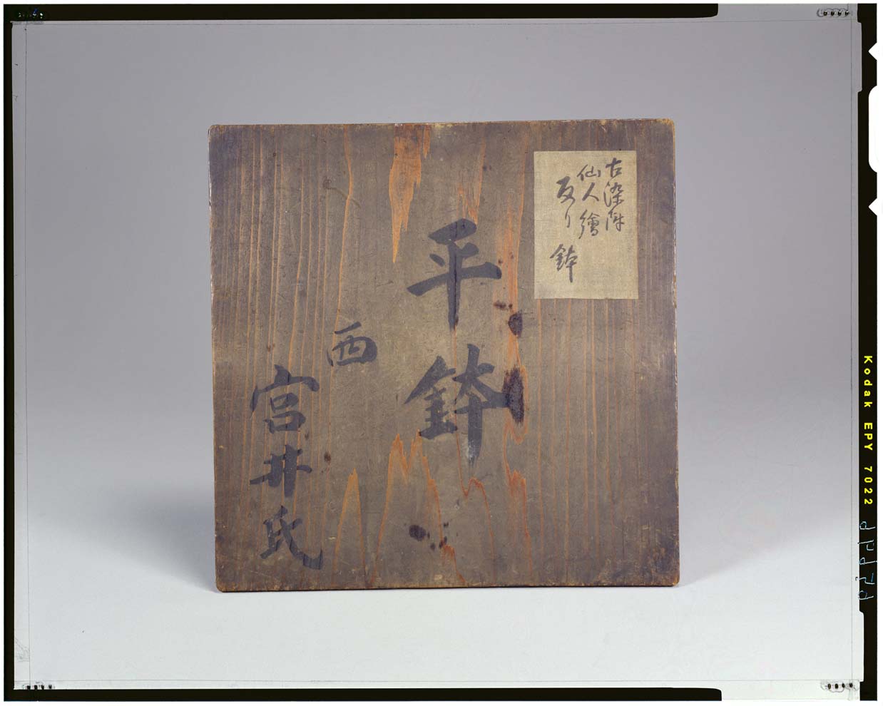 箱蓋表 貼紙「古染付/仙人繪/反り鉢」墨書「平鉢/西/宮井氏」