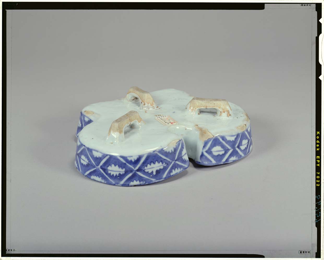 古染付桃樹雲龍文洲浜形皿/箱蓋表「□□原 南京/染付洲浜鉢壱」