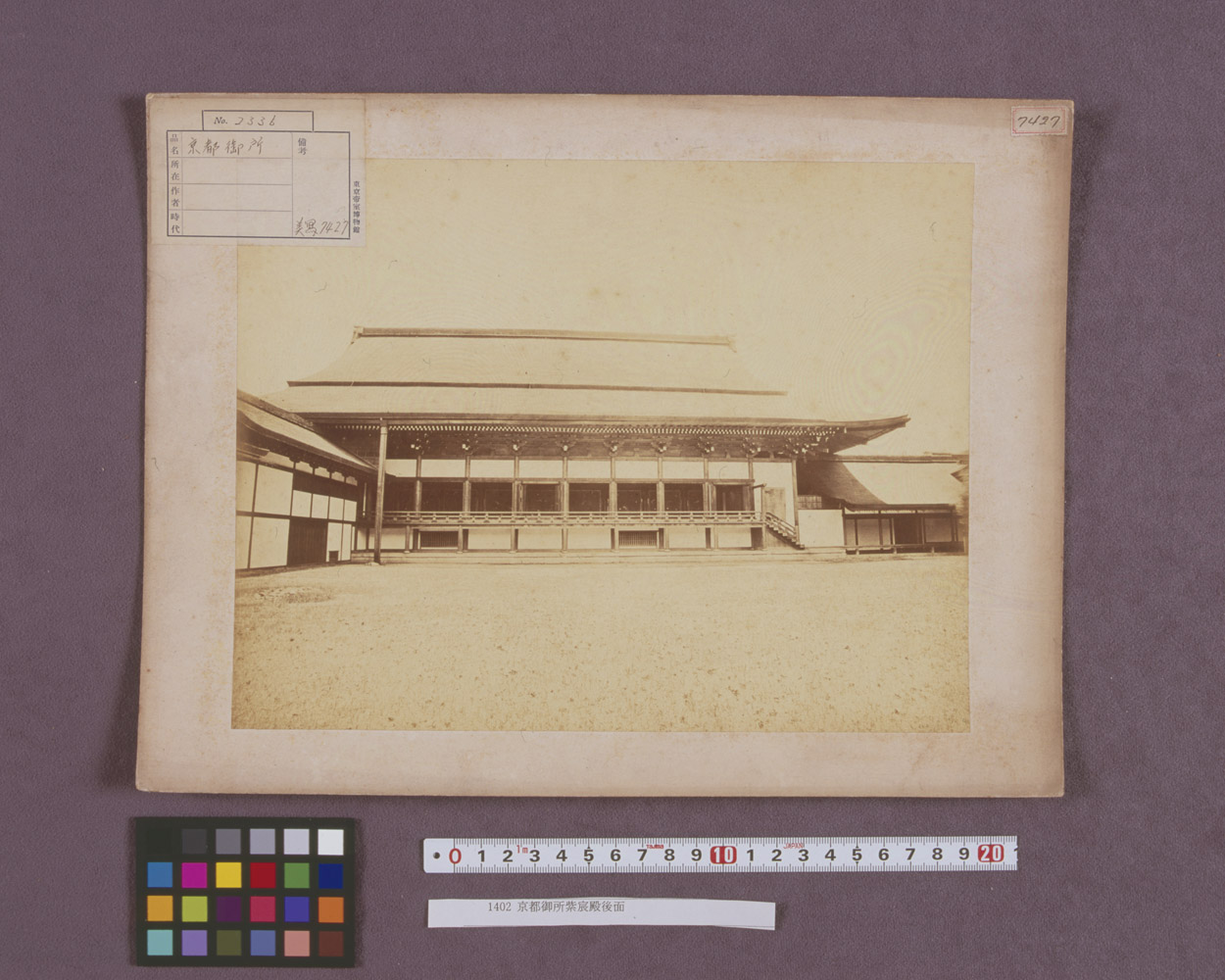 | 備考: | 壬申検査関係写真古写真1399_京都御所紫宸殿(C0093668,C0093669,C0093670)古写真1400_京都御所紫宸殿(C0093671,C0093672)古写真1401_紫宸殿後面 (C0093673,C0093674)古写真1402_紫宸殿後面(C0093675-C0093677)古写真1403_清凉殿(C0093678-C0093680)古写真1404_清凉殿(C0093681,C0093682)古写真1405_清凉殿後面(C0093683-C0093685)古写真1406_内侍所(C0093686-C0093688)古写真1407_内侍所(C0093689,C0093690)古写真1408_小御所 (C0093691,C0093692)古写真1409_小御所御庭(C0093693,C0093694)古写真1410_常御殿(C0093695,C0093696)古写真1411_御学問所(C0093697,C0093698)古写真1412_常御殿南(C0093699,C0093700)古写真1413_参内殿(C0093701-C0093703)古写真1414_内侍所・同假殿・御鳳輦部屋(C0093704,C0093705) |