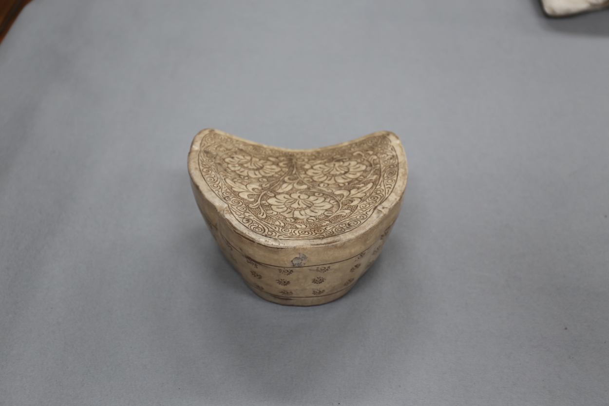 白釉刻花唐草文枕