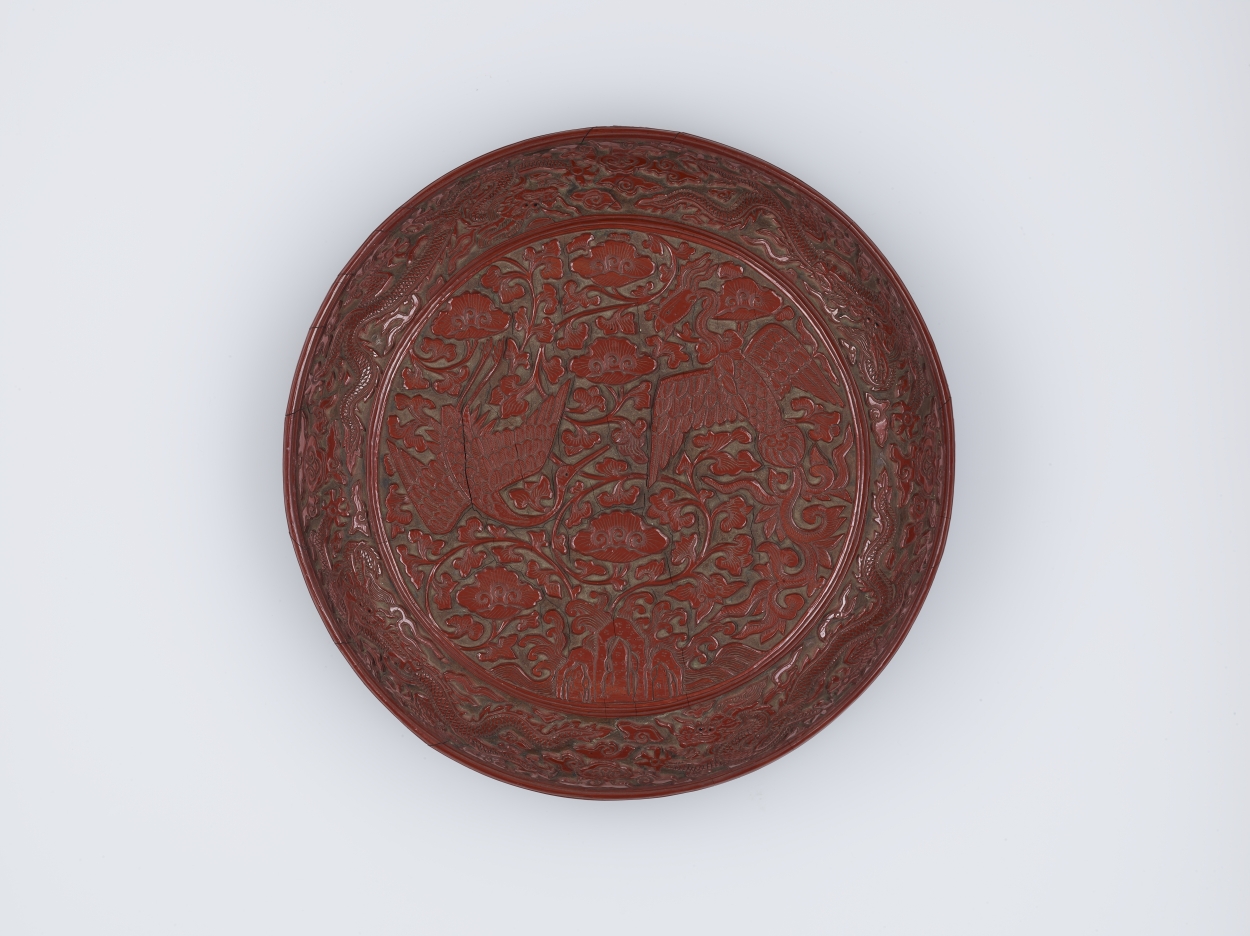 鳳鶴堆朱食籠「大明嘉靖年製」銘