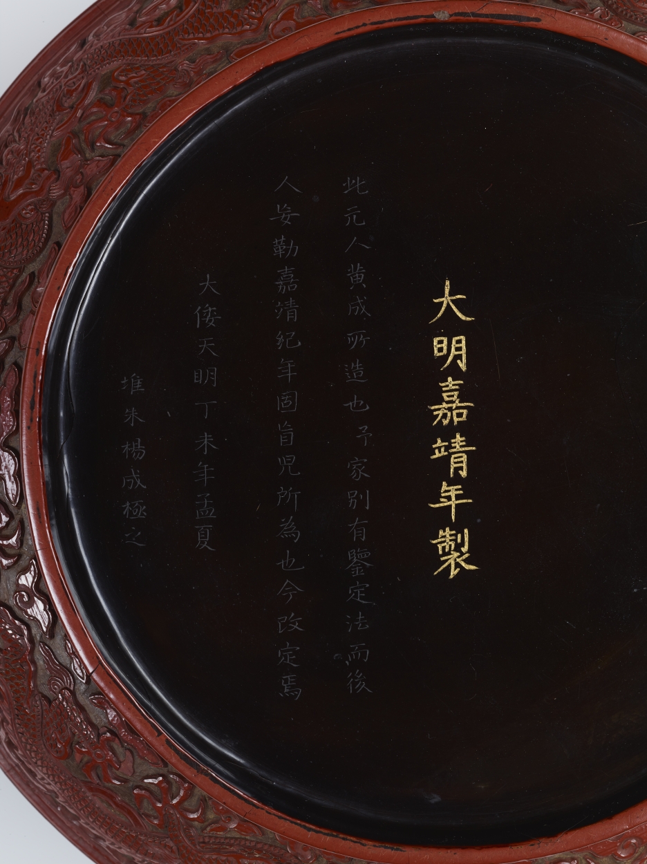 鳳鶴堆朱食籠「大明嘉靖年製」銘